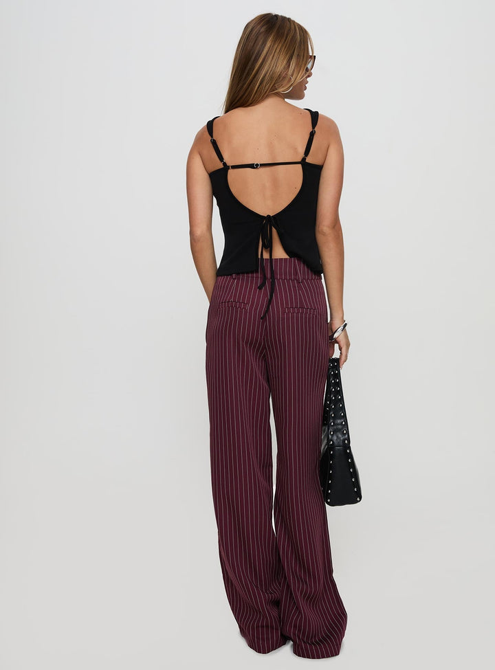 Lorenne Orta Bel Pantolon Bordo Çizgili