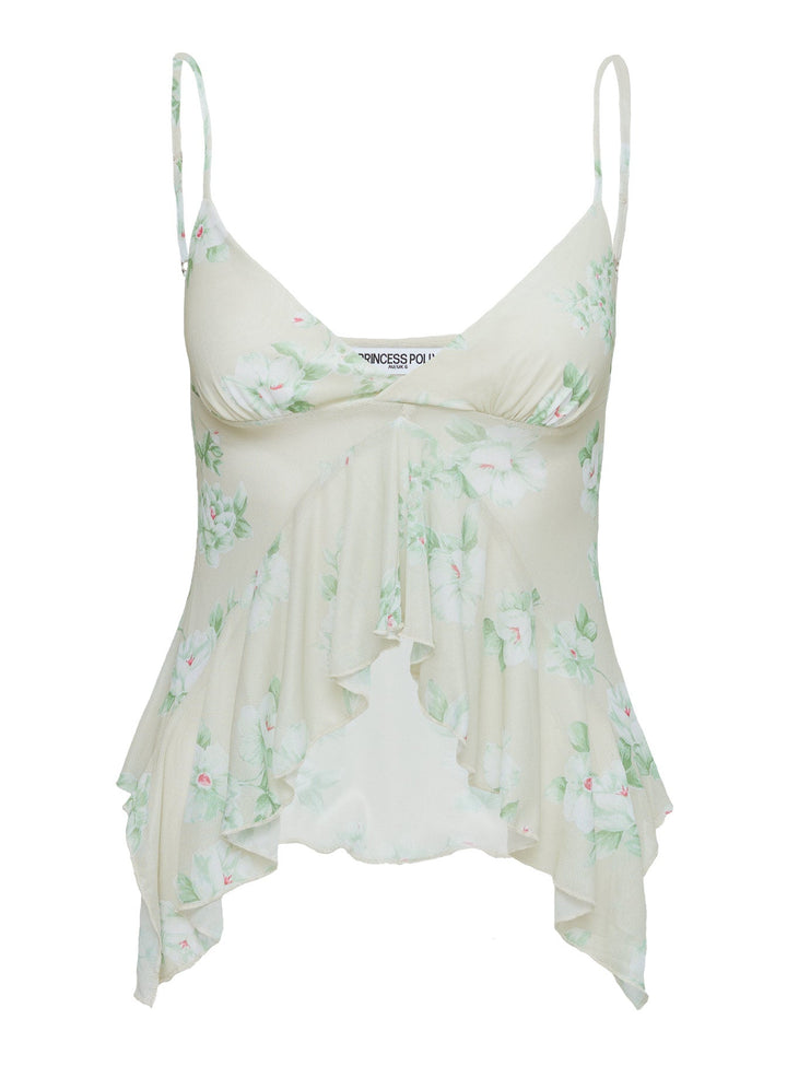 Magnolea Asimetrik Üst Yeşil Çiçekli