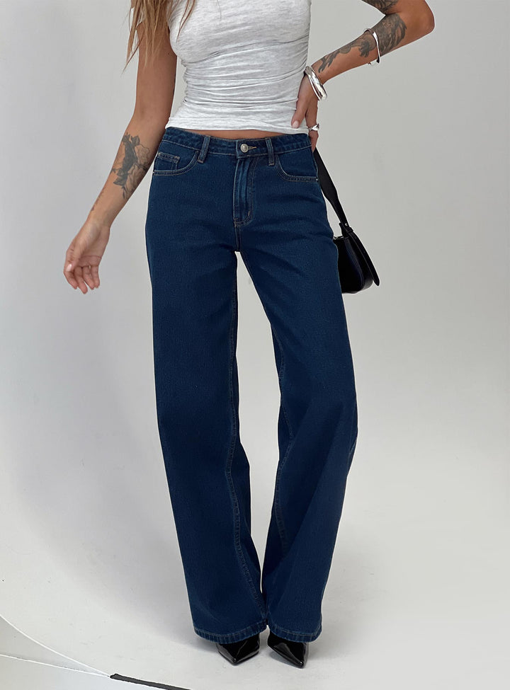 Maryanne Orta Bel Düz Paça Kot Pantolon Koyu Yıkama