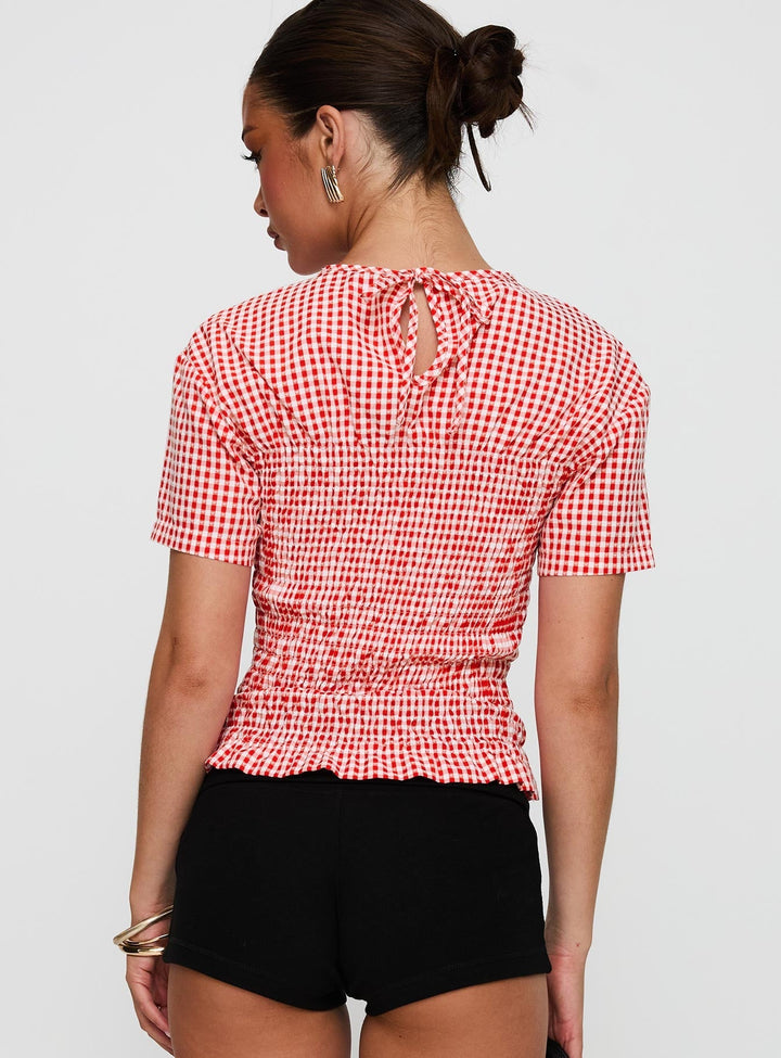 Belki Yarın Kırmızı Kareli Büzgülü Üst