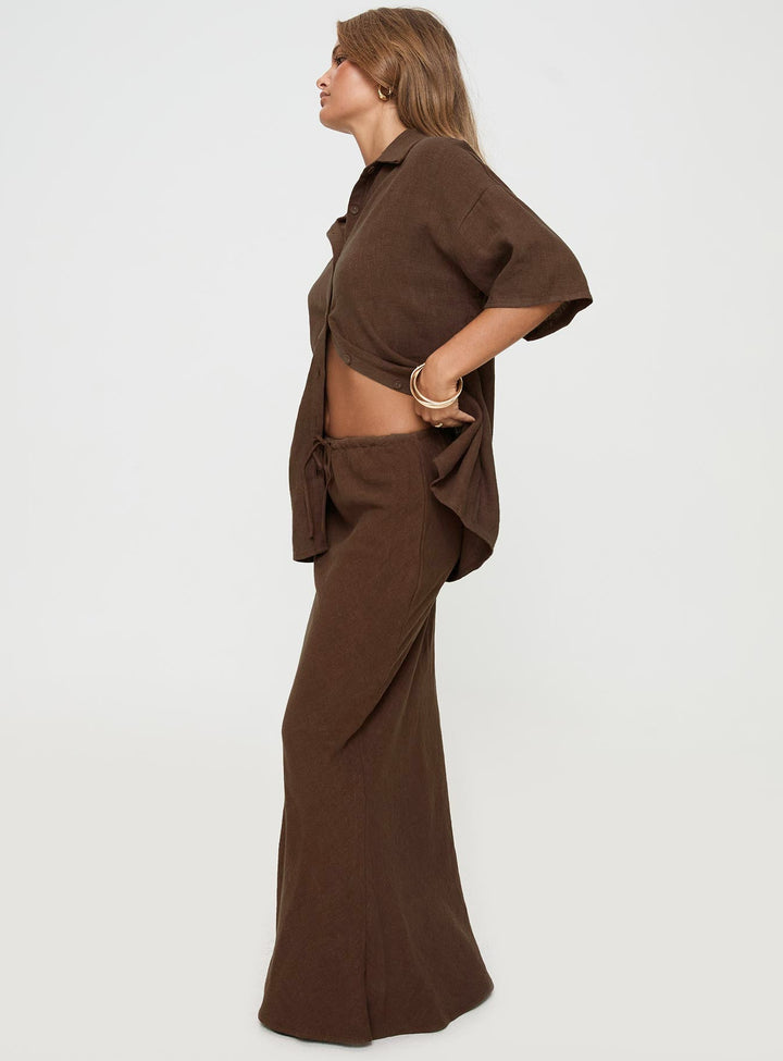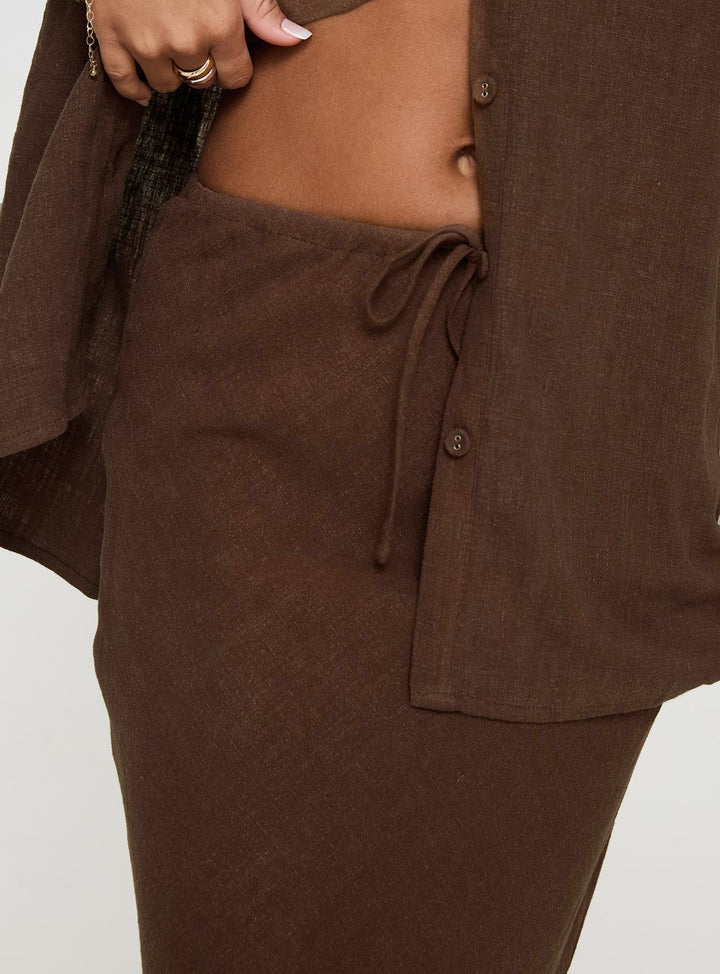 Mercer Keten Karışımlı Uzun Etek Çikolata