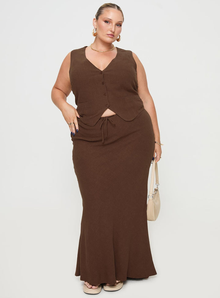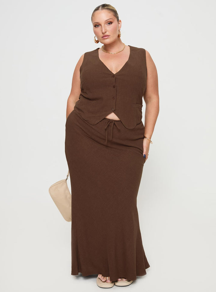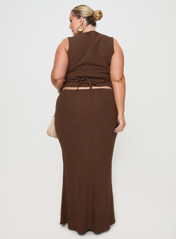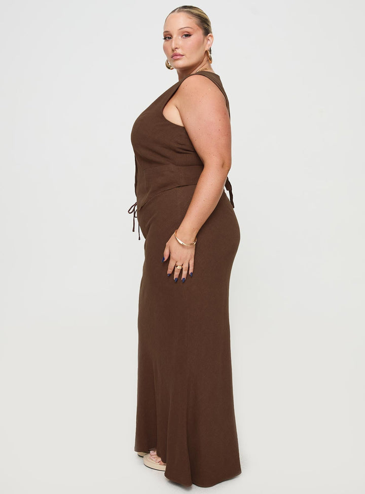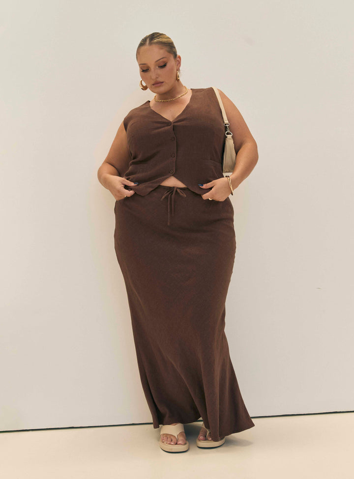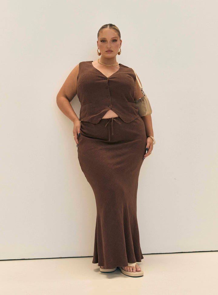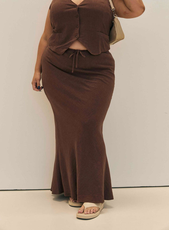 Mercer Keten Karışımlı Uzun Etek Çikolata Eğrisi