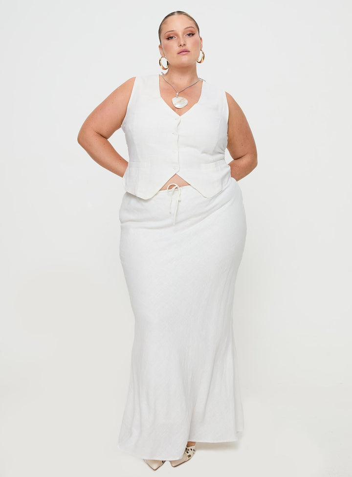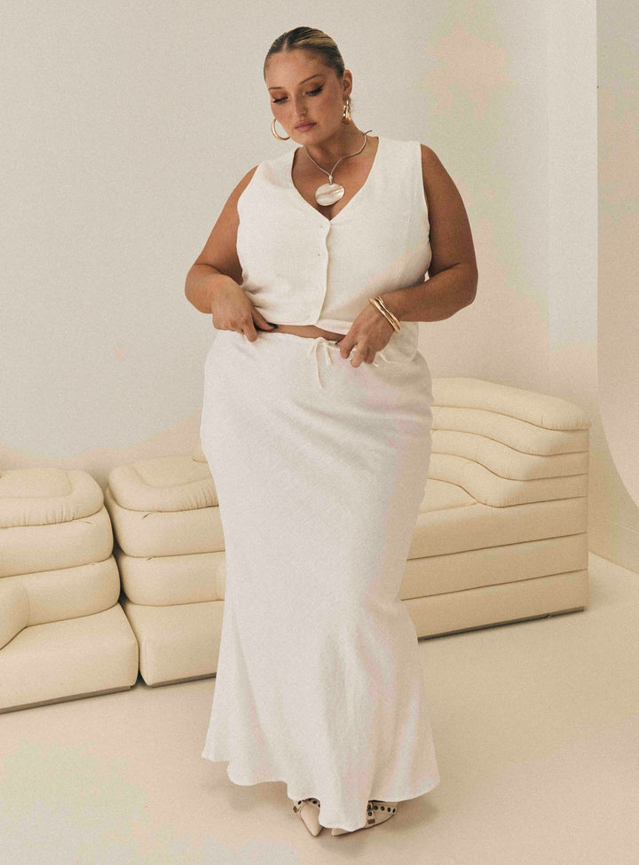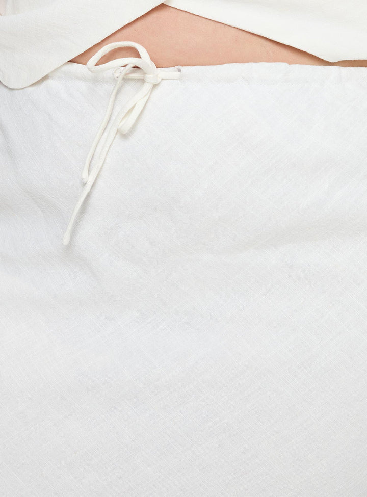 Mercer Keten Karışımlı Uzun Etek Beyaz Eğri