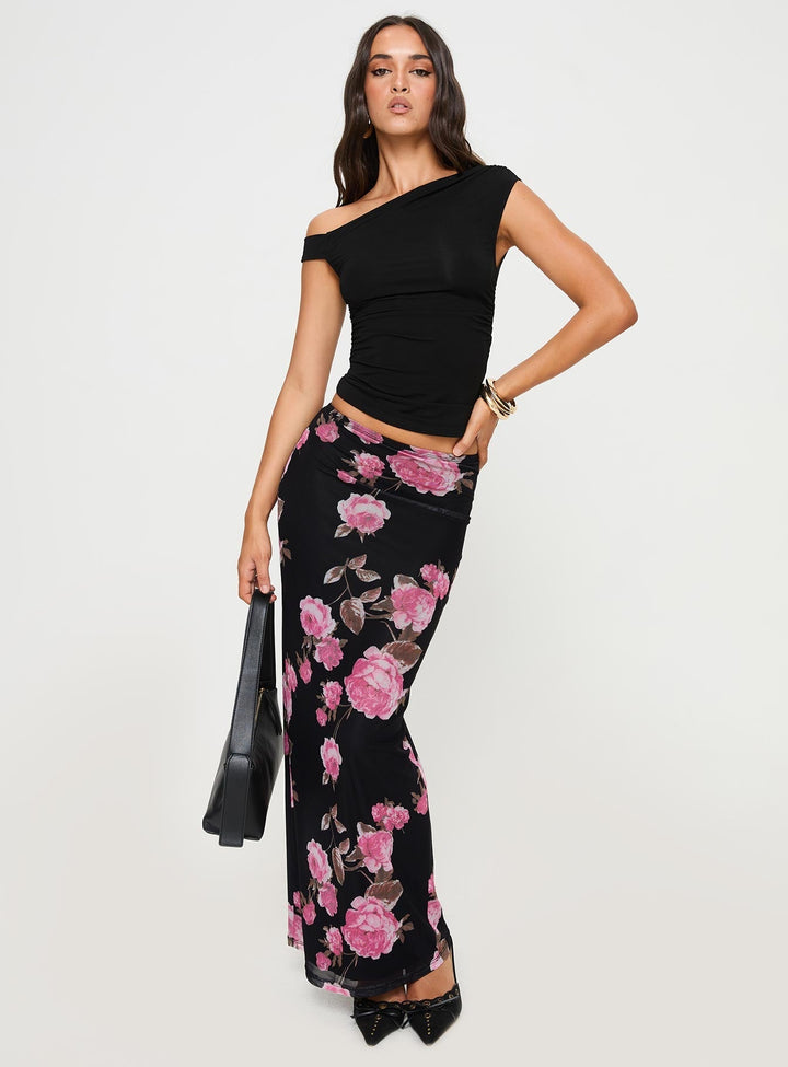 Modalla Uzun Etek Siyah Çiçek Desenli