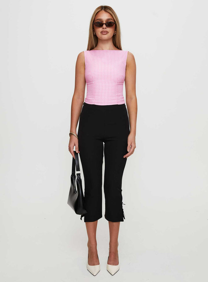Monterrey Sırtı Açık Fiyonk Detaylı Pembe Gingham Üst
