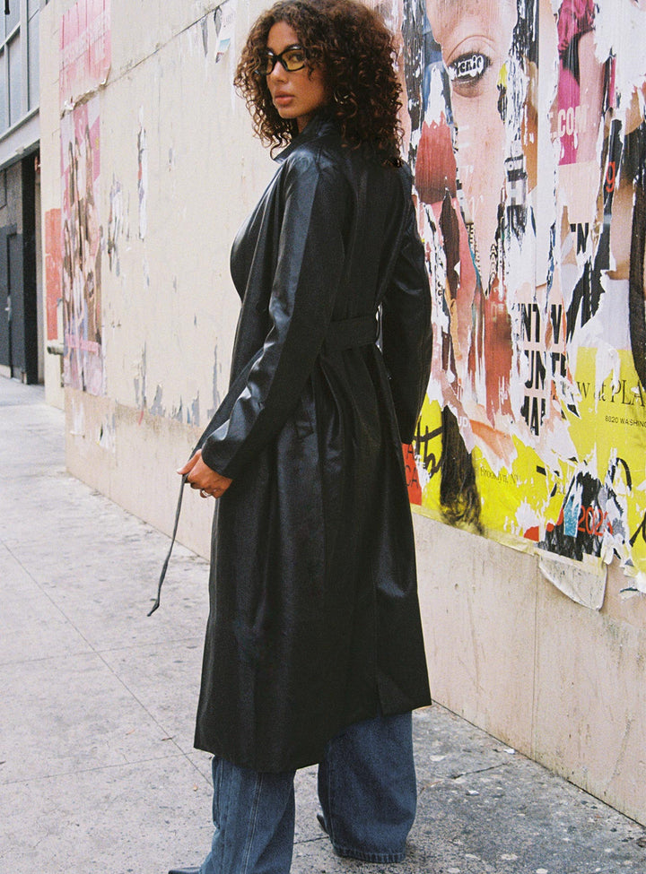 Sadece Bu Gece İçin Suni Deri Trençkot Siyah