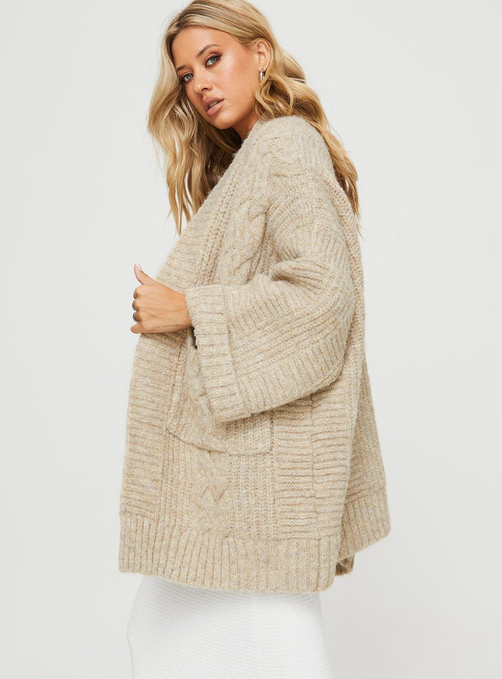Paisleigh Kablo Örgü Hırka Bej