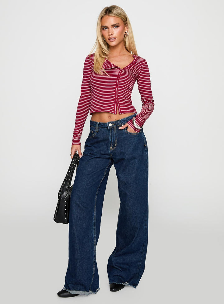 Passoni Uzun Kollu Üst Kırmızı / Beyaz Çizgili