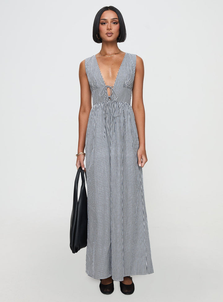 Pokey Maxi Elbise Siyah / Beyaz Çizgili Minyon