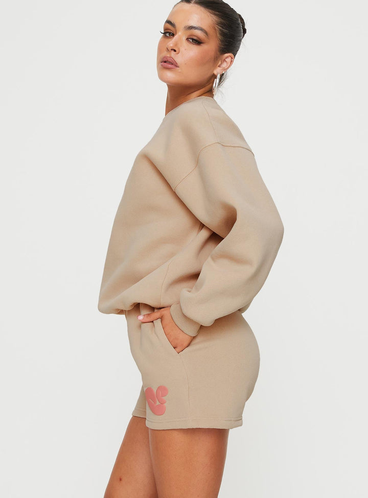 Prenses Polly Yuvarlak Yaka Sweatshirt Kabarcık Yazı Kum/Pembe
