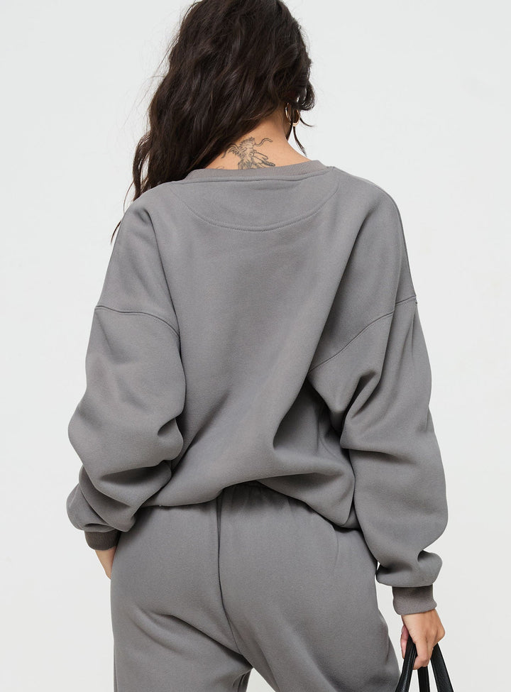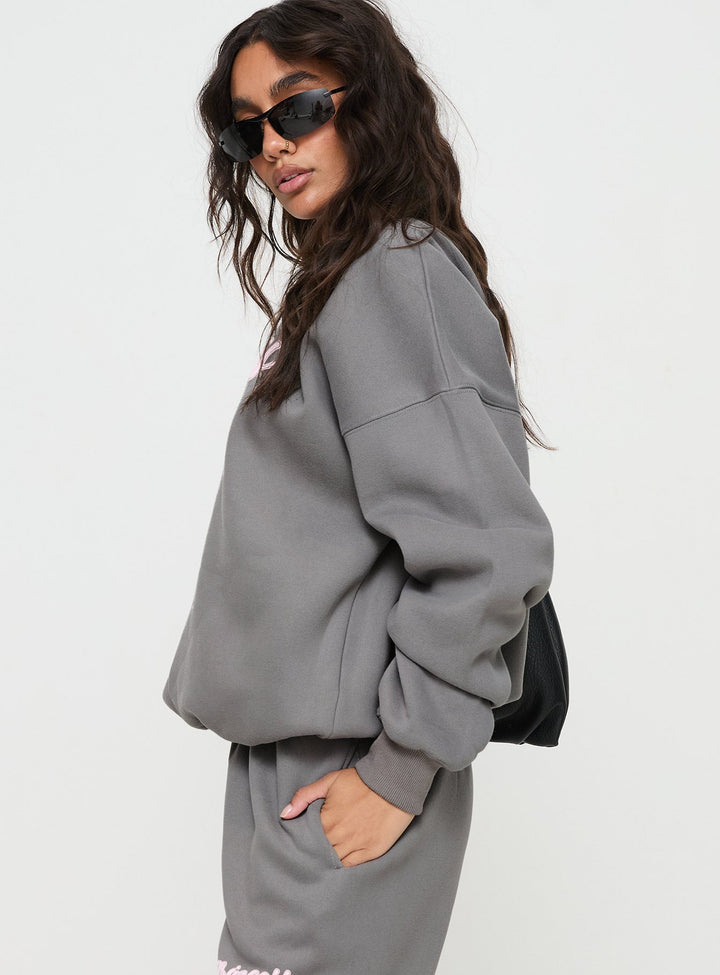 Prenses Polly Yuvarlak Yaka Sweatshirt Kabarık Yazı Kömür Rengi