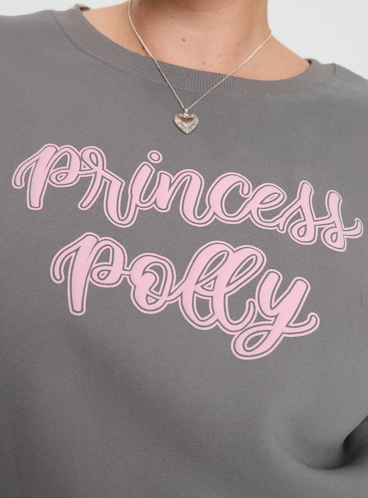 Prenses Polly Yuvarlak Yaka Sweatshirt Kabarık Yazı Kömür Eğrisi