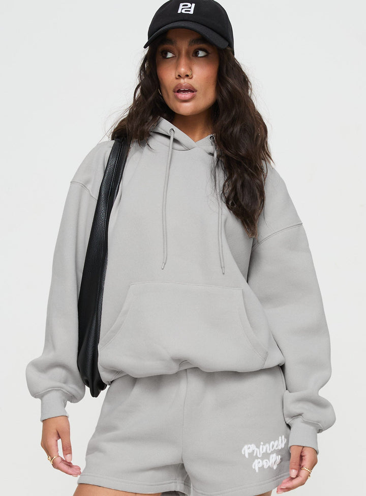 Prenses Polly Kapüşonlu Sweatshirt Puf Yazı Gri