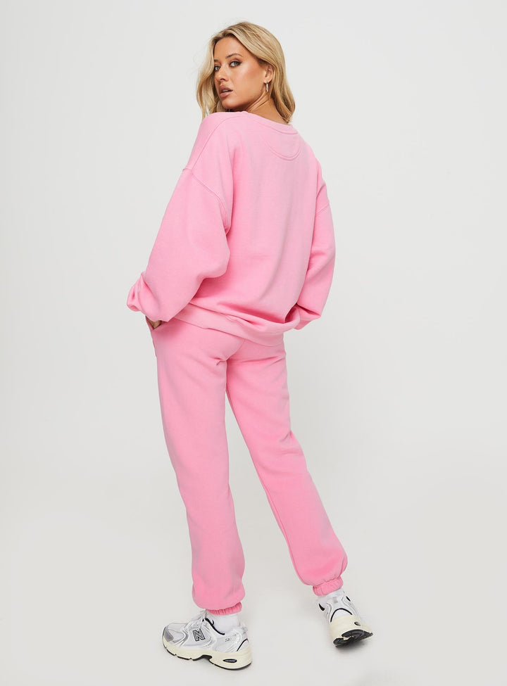 Prenses Polly Eşofman Altı Kıvrımlı Yazı Karpuz Pembesi / Gül