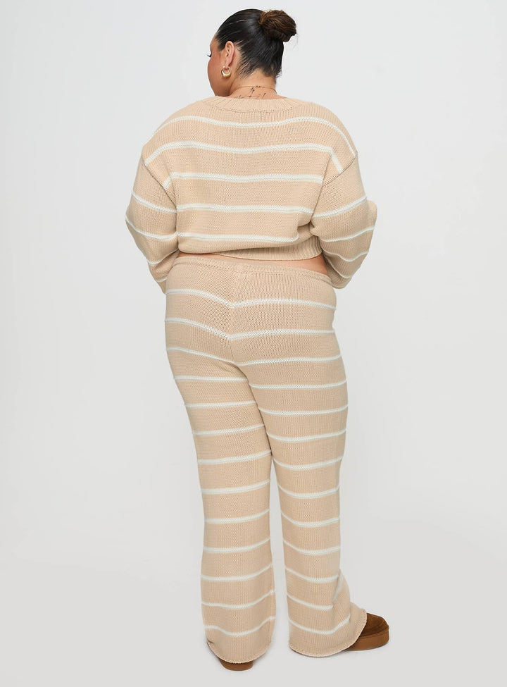 Aklını Oku Örgü Pantolon Krem Çizgili