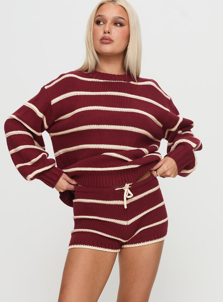 Aklını Oku Örme Kısa Bordo Çizgili