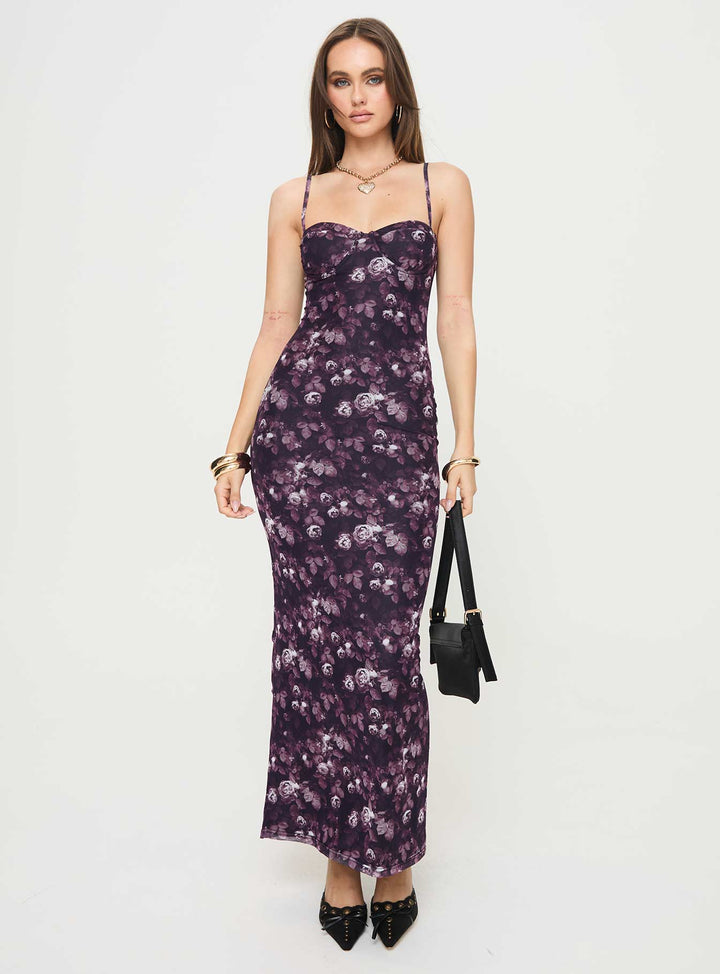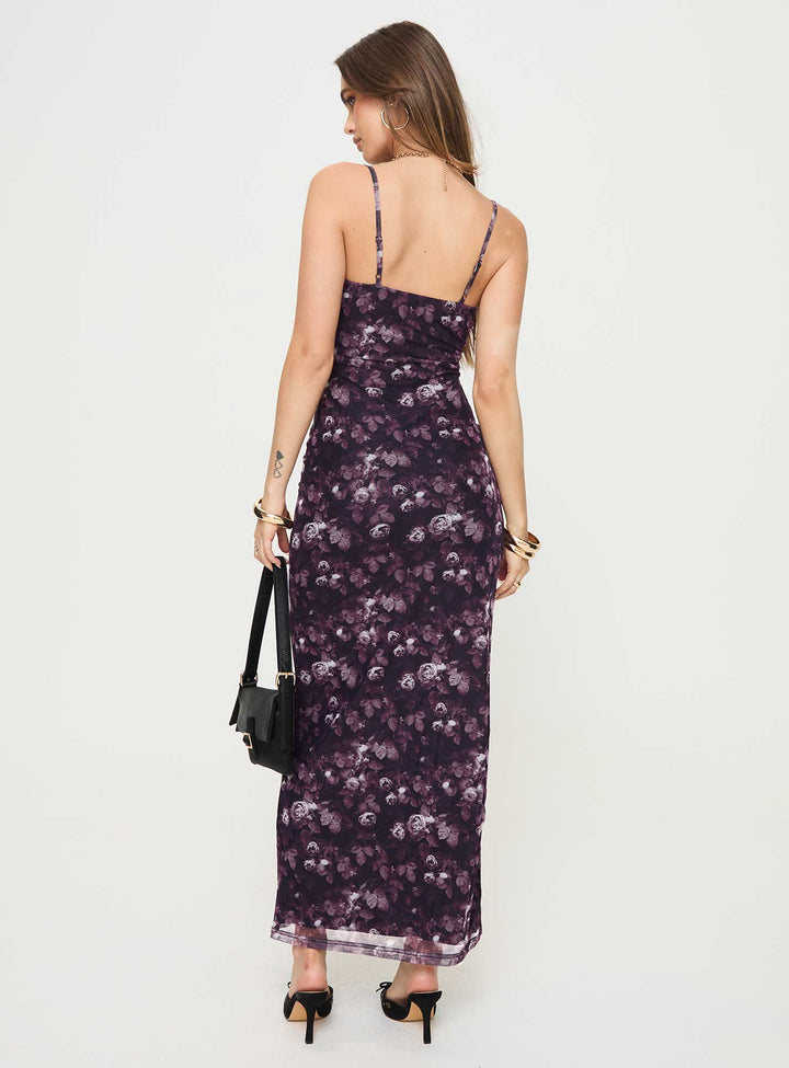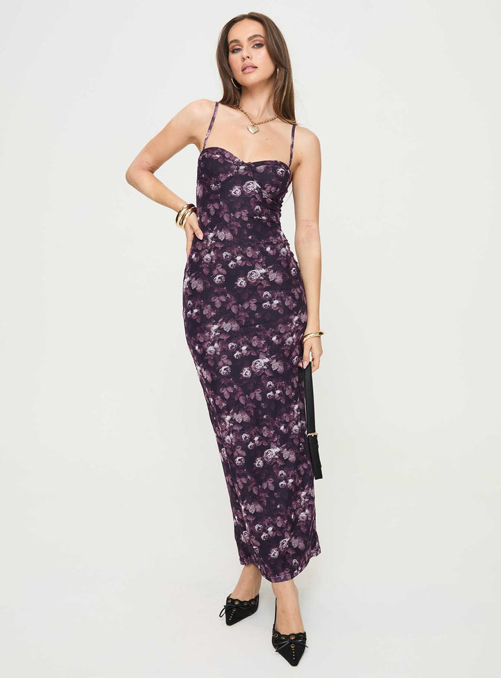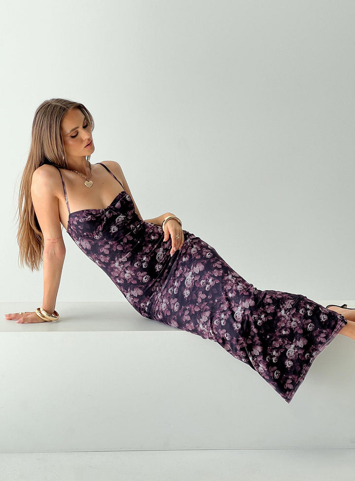 Reynaldo Uzun Elbise Mor / Çiçek Desenli