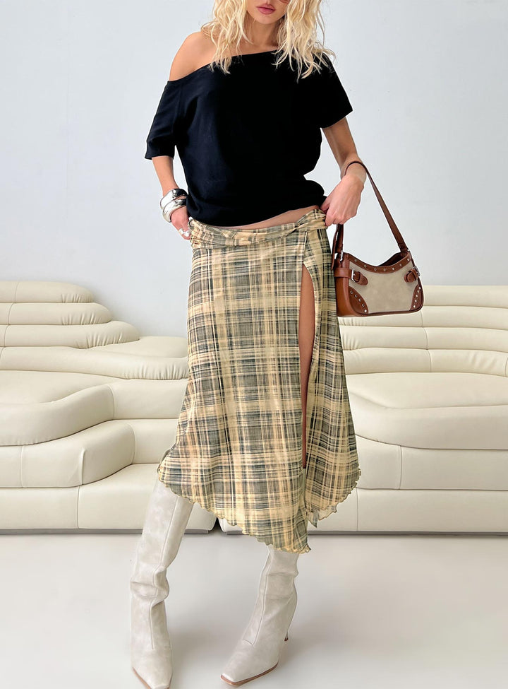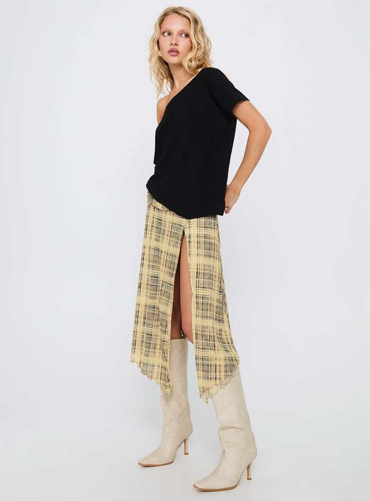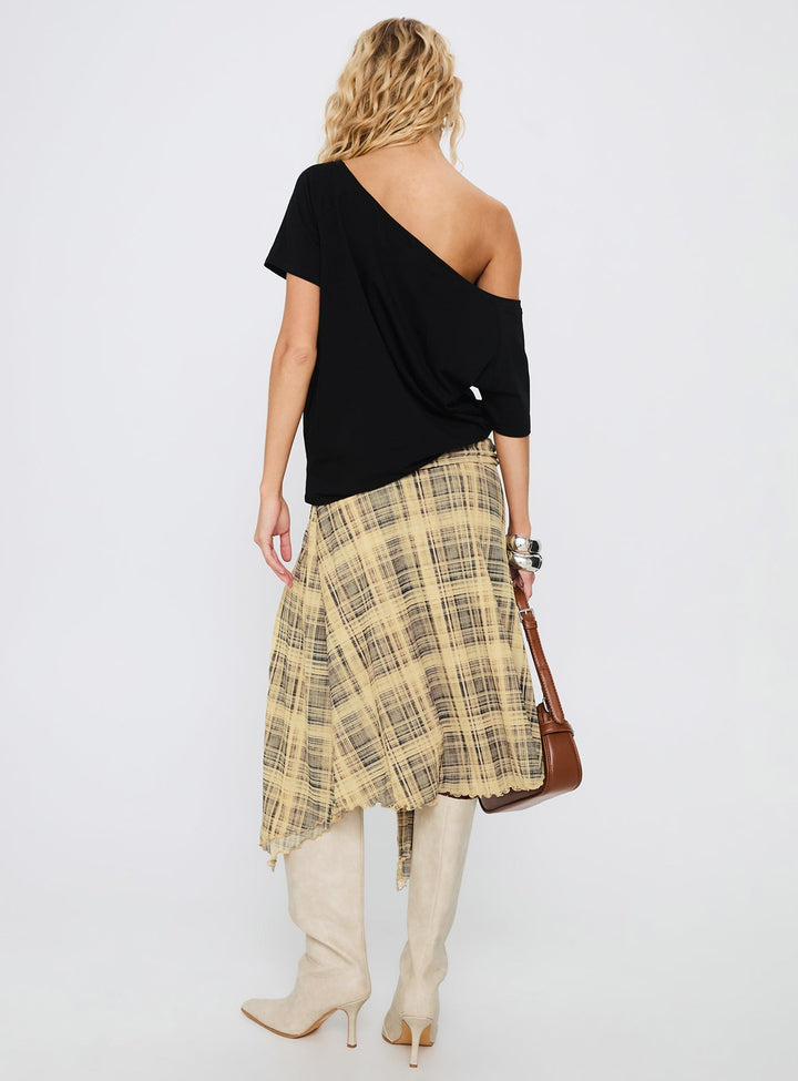 Rhaina Drapeli Asimetrik Midi Etek Sarı Kareli