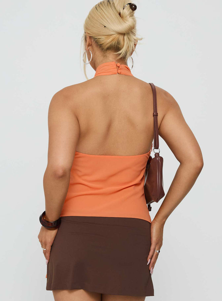 Rhevena Sırtı Açık Derin V Yaka Turuncu Bluz