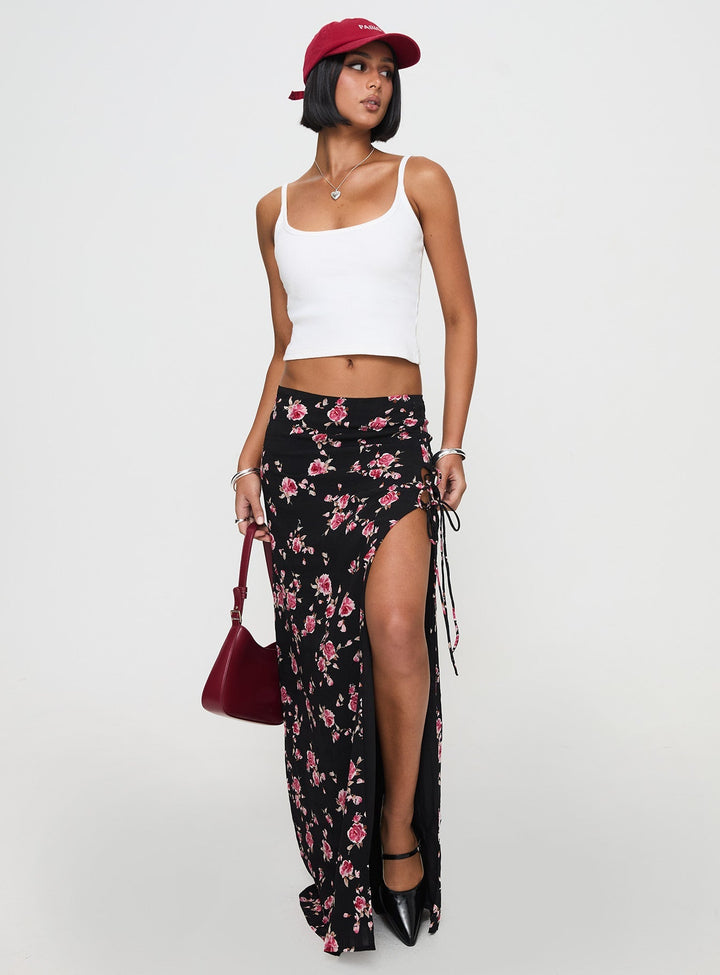 Rhomana Uzun Etek Siyah Çiçek Desenli