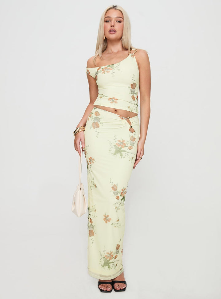 Rios Tek Omuzlu Sarı Çiçekli Üst