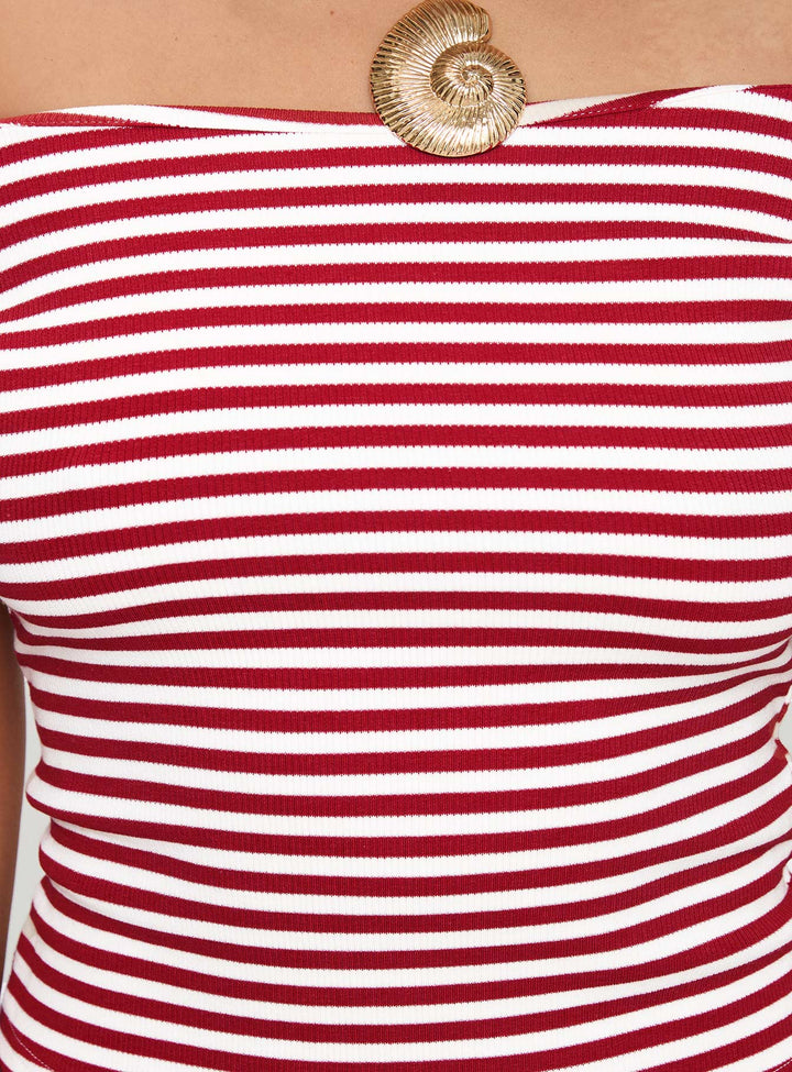 Rizzie Omuz Açık Kırmızı Çizgili Üst