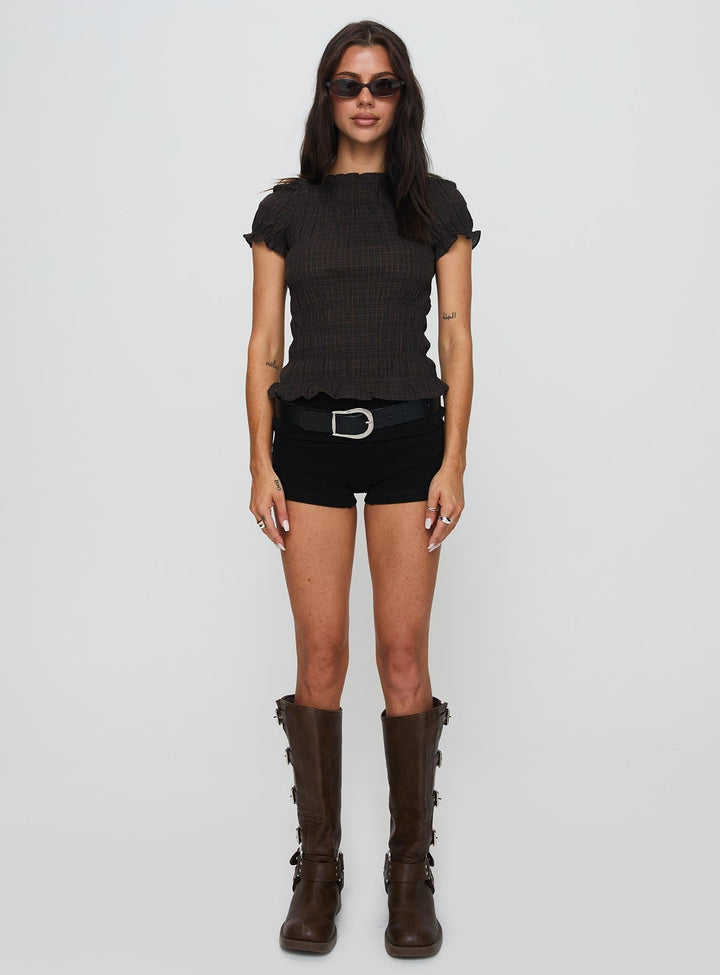 Romelle Büzgülü Üst Siyah / Kahverengi Ekose Küçük