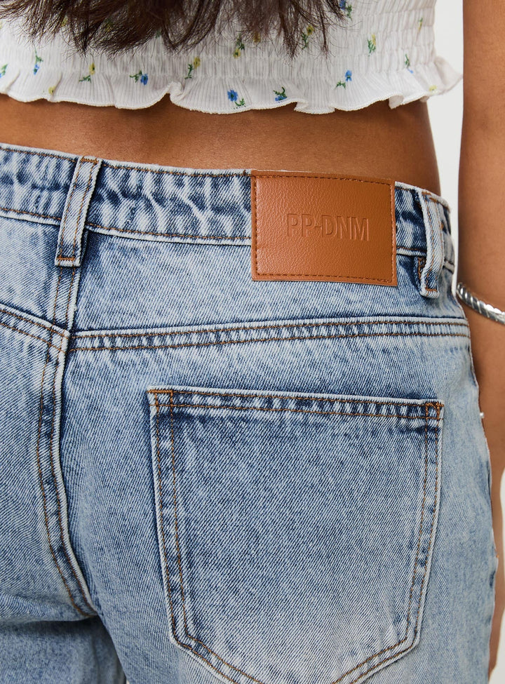 Ronine Düşük Bel Geniş Paça Kot Pantolon Açık Yıkama