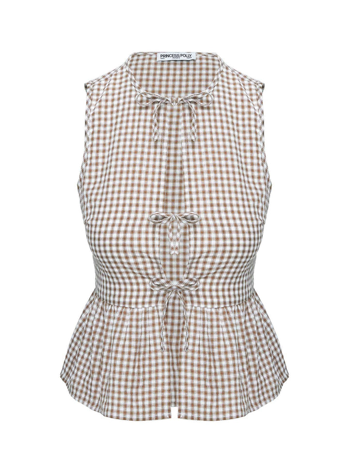 Rosellah Bağlamalı Üst Kahverengi Kareli