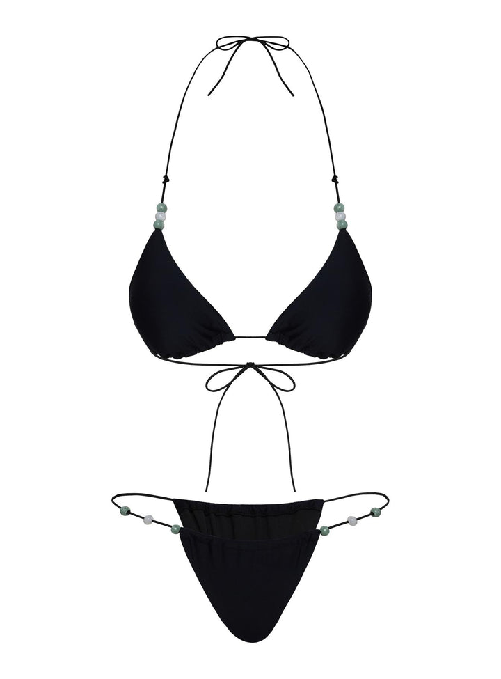 Tuzlu Su Boncuk Detaylı Bikini Üstü Siyah