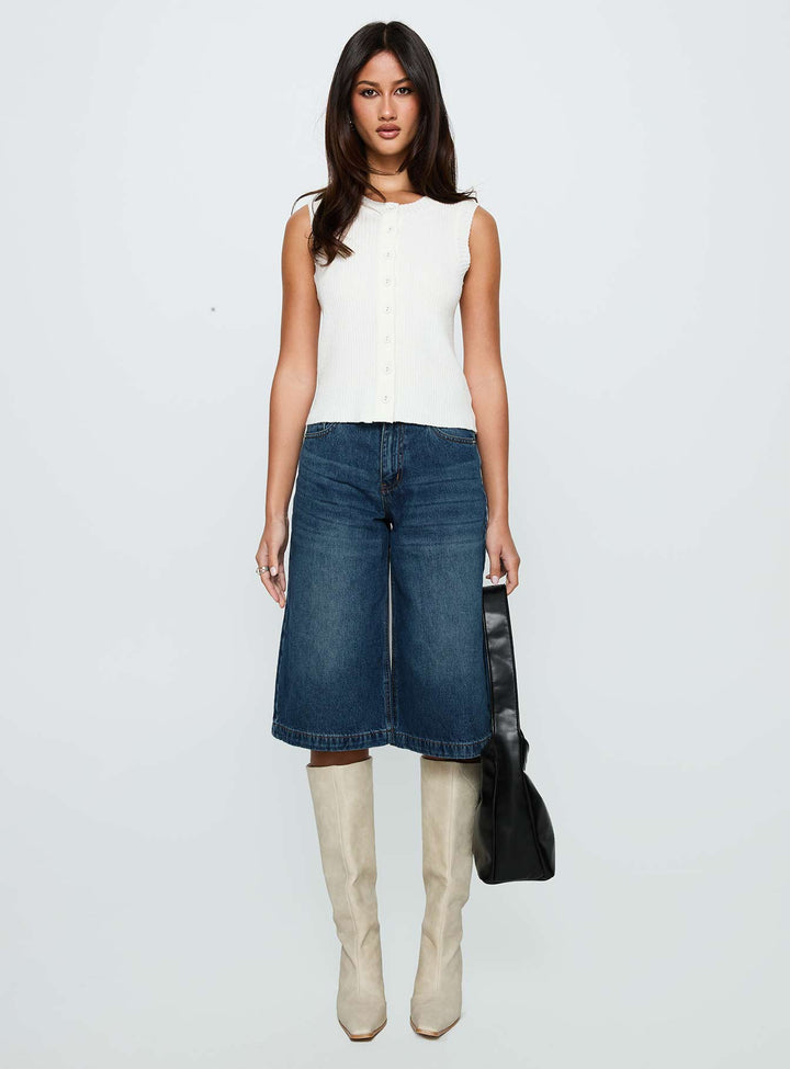 Simie Düğmeli Ön Kaburga Üst Beyaz