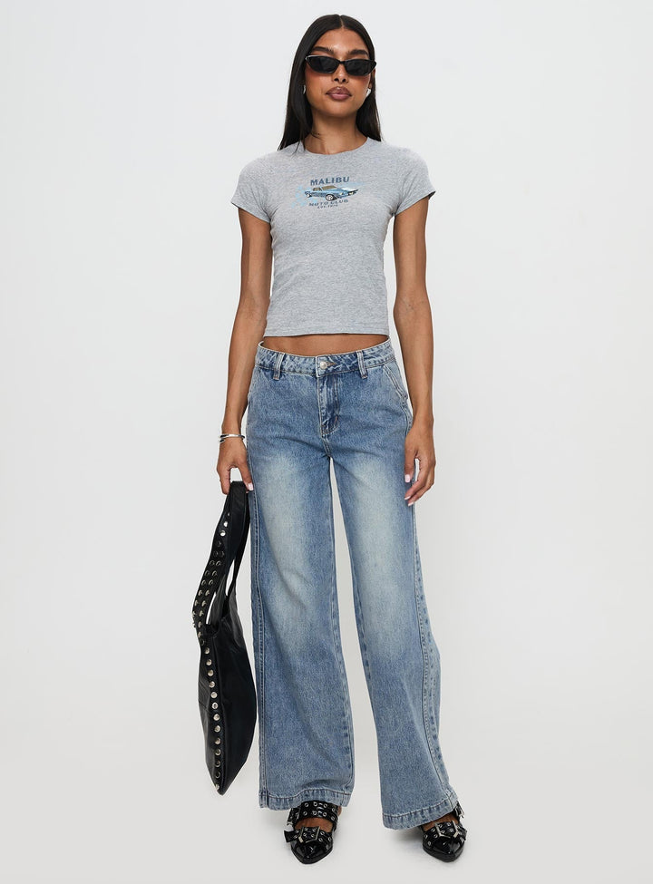 Skipper Düşük Bel Geniş Paça Kot Pantolon Vintage Mavi