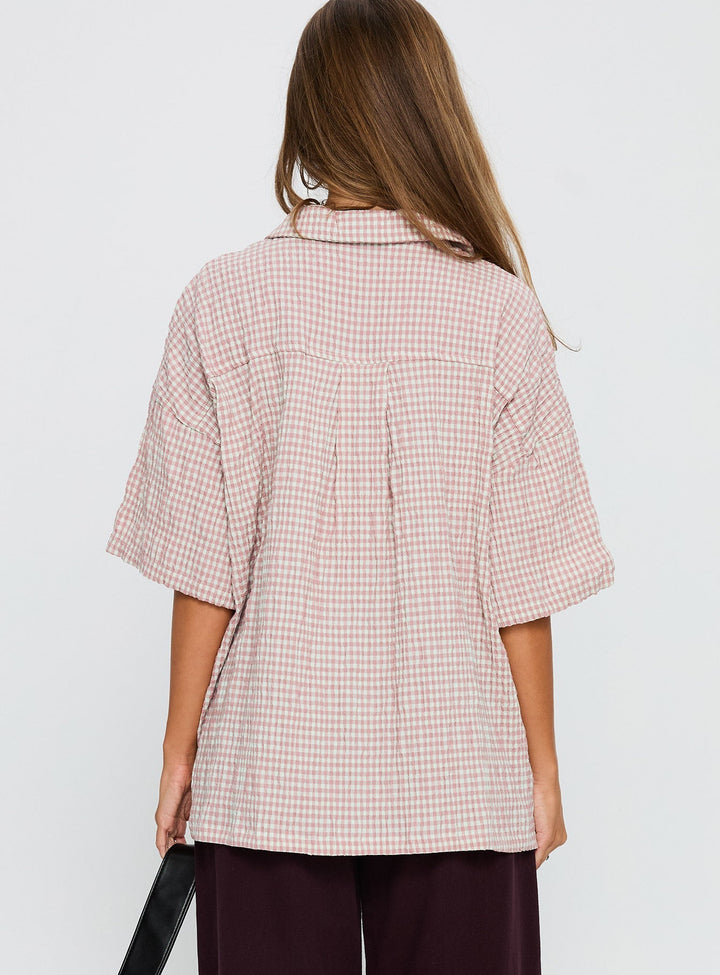 Yumuşak Yan Büyük Boy Düğmeli Üst Pembe Kareli