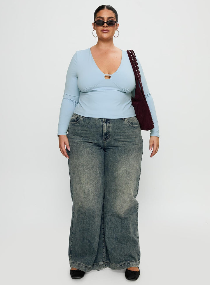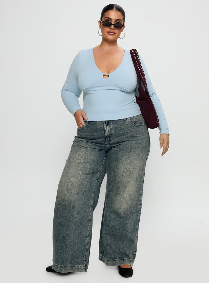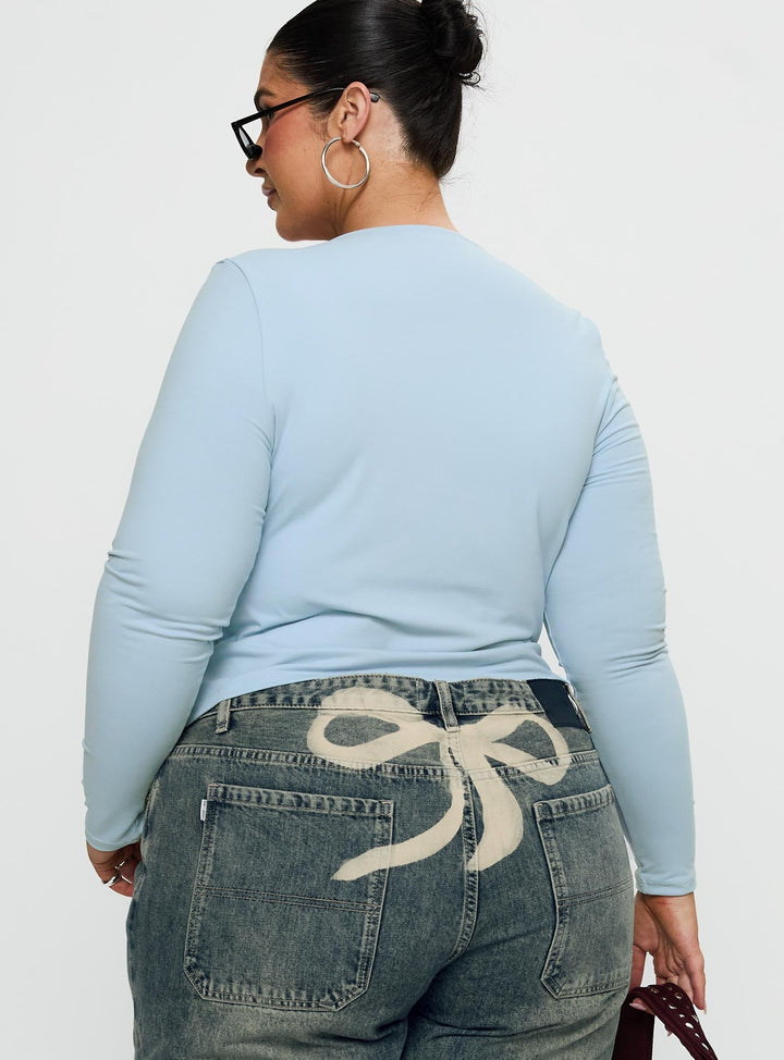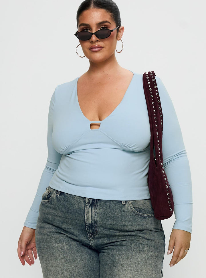 Sold On You Uzun Kollu Üst Mavi Eğri