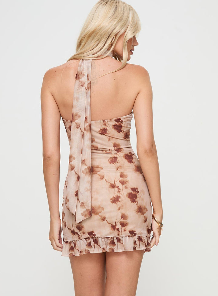 Stockton Straplez Mini Elbise Bej Çiçek Desenli