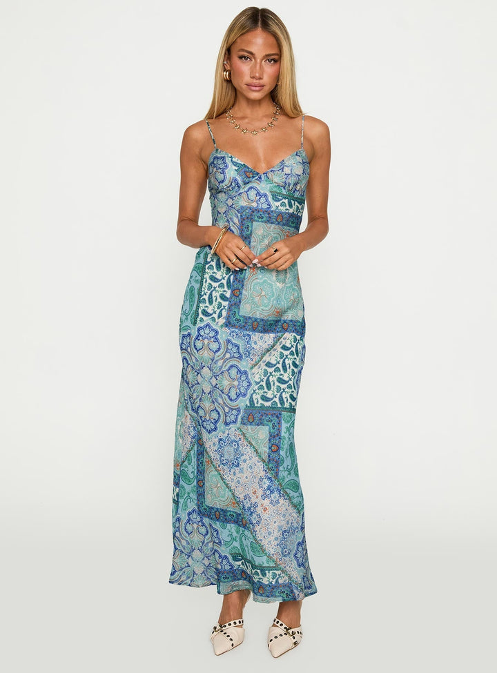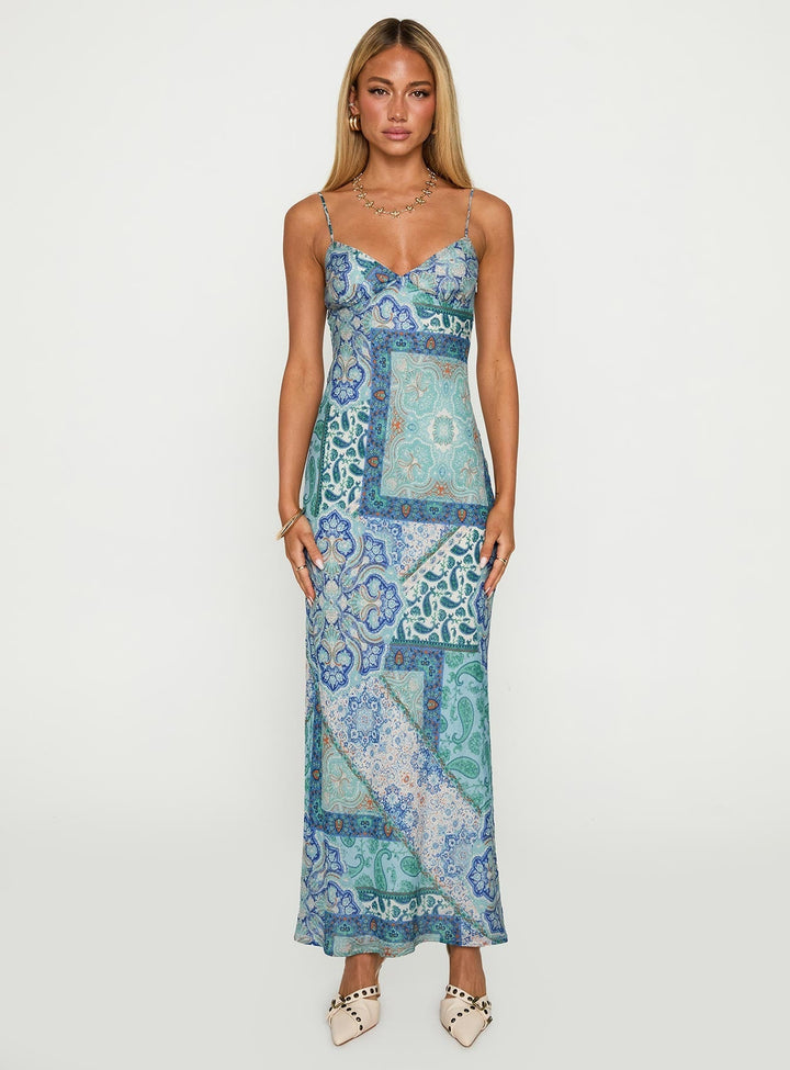 Şeker Erik Uzun Elbise Mavi Paisley