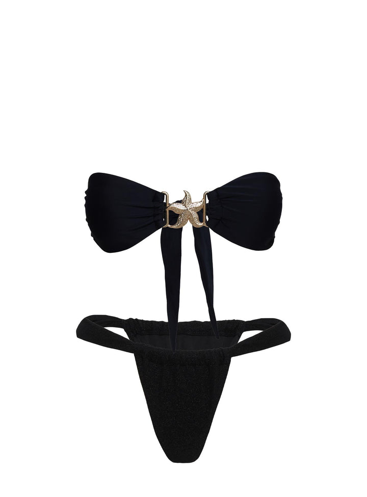 Yaz Sezonu Büzgülü Yan Bikini Altı Siyah