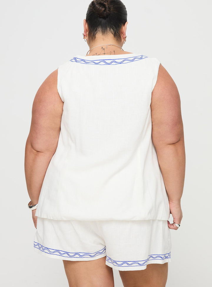 Güneş Ve Palmiye Ağaçları Yelek Seti Beyaz / Mavi Eğri
