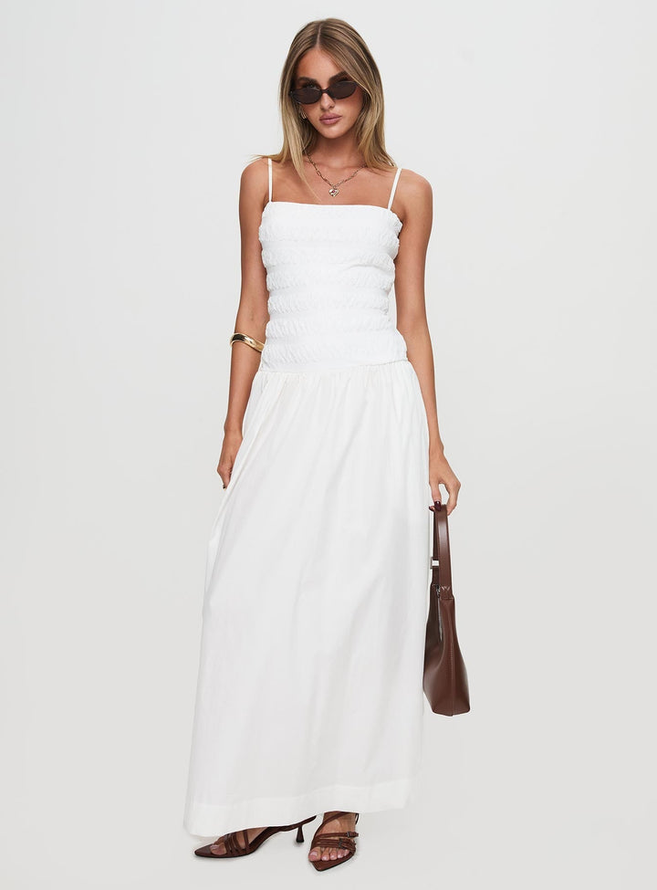 Sweetgum Büzgülü Uzun Elbise Beyaz