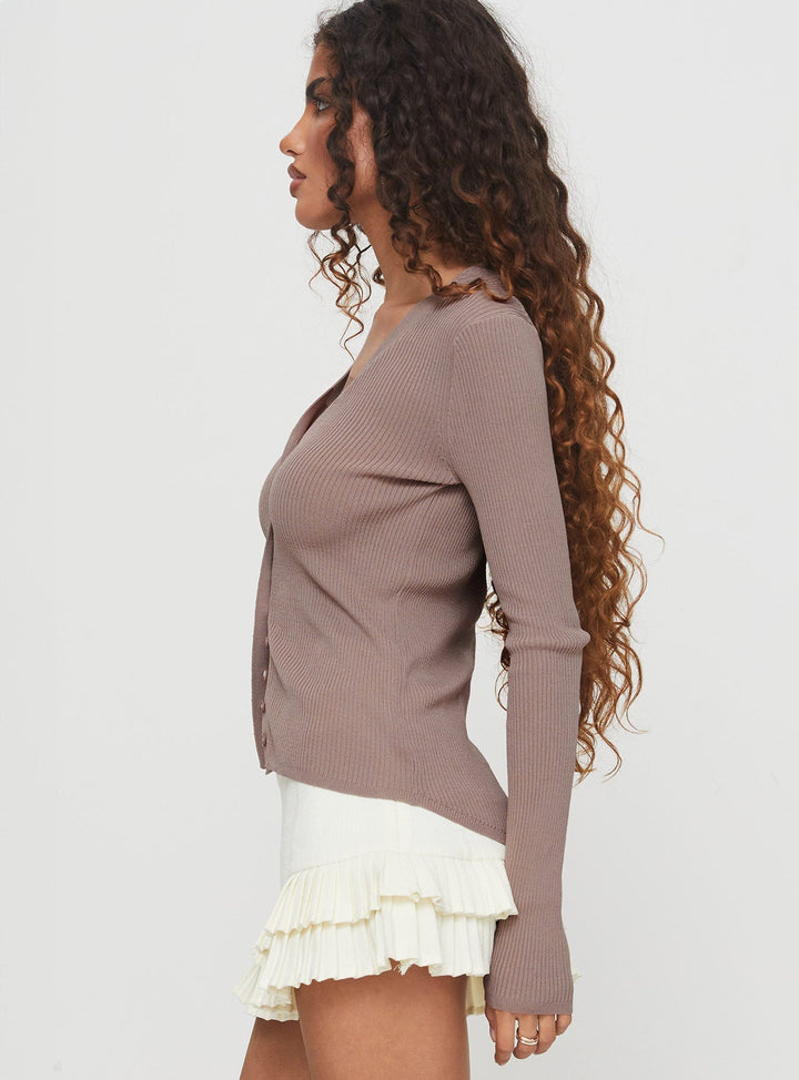 Sylvestra Uzun Kollu Üst Kahverengi