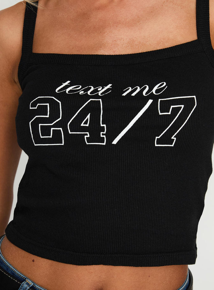 Text Me 24/7 Grafik Tank Siyah