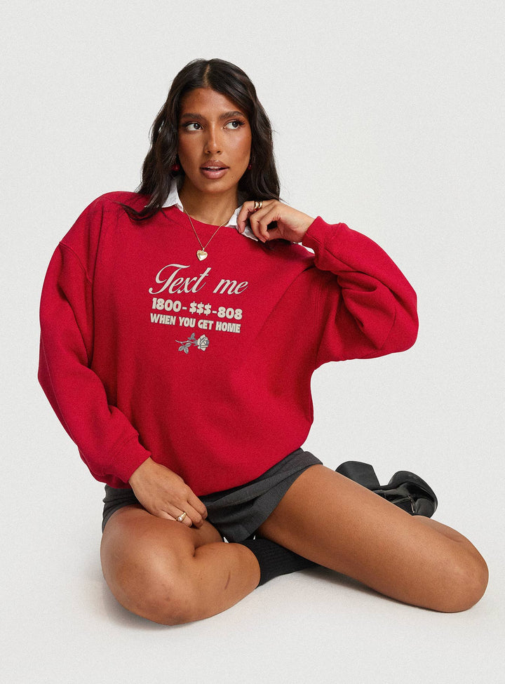 Bana Yaz Yuvarlak Yaka Sweatshirt Kiraz