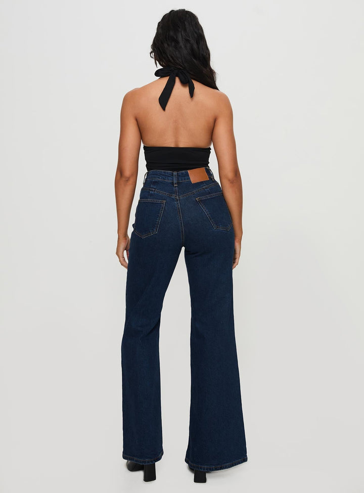 Thearlie Yüksek Bel Kloş Kot Pantolon Koyu Yıkama