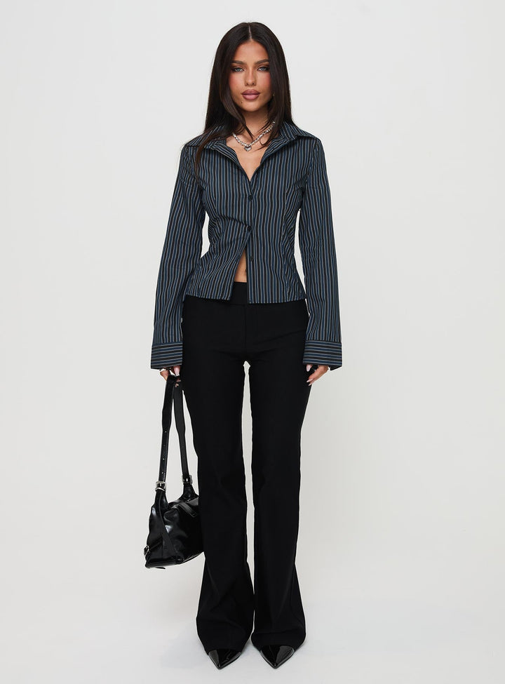 Theroux Uzun Kollu Üst Lacivert Çizgili