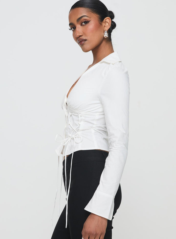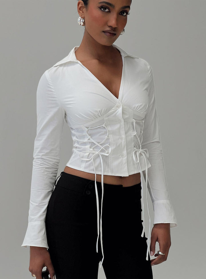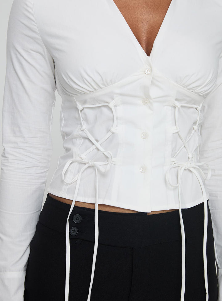 Sana Bağlı Uzun Kollu Üst Beyaz