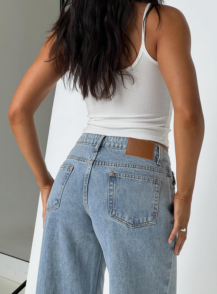 Toby Low Rise Bol Paça Kot Pantolon Açık Yıkama