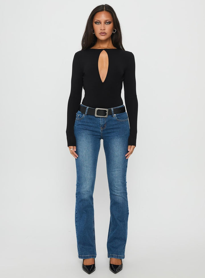 Tovira Kesikli Uzun Kollu Bodysuit Siyah