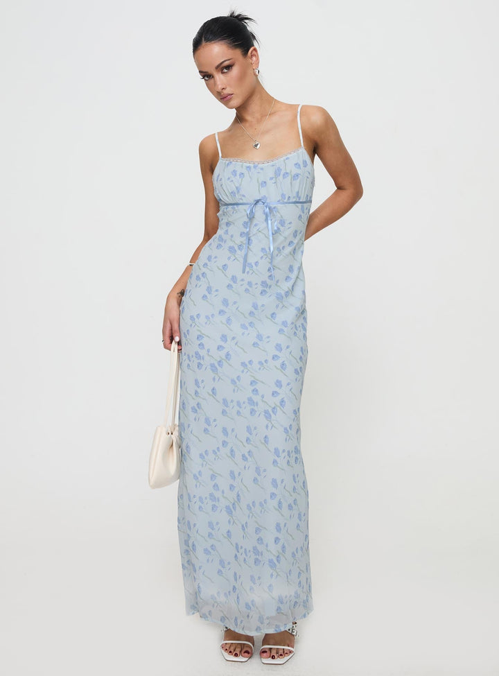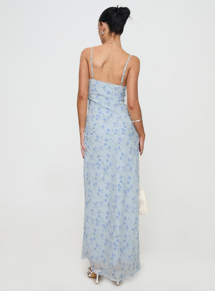 Valencia Maxi Elbise Mavi Çiçek Desenli