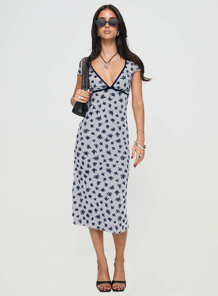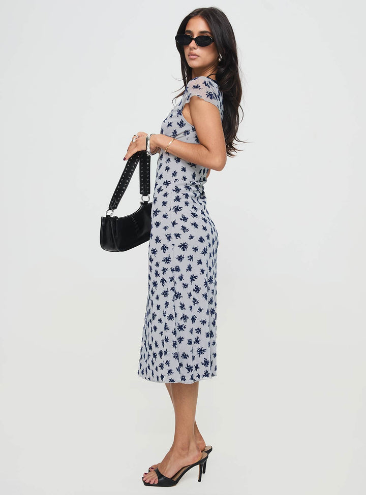Vilinia Midi Elbise Çiçek Desenli Gri