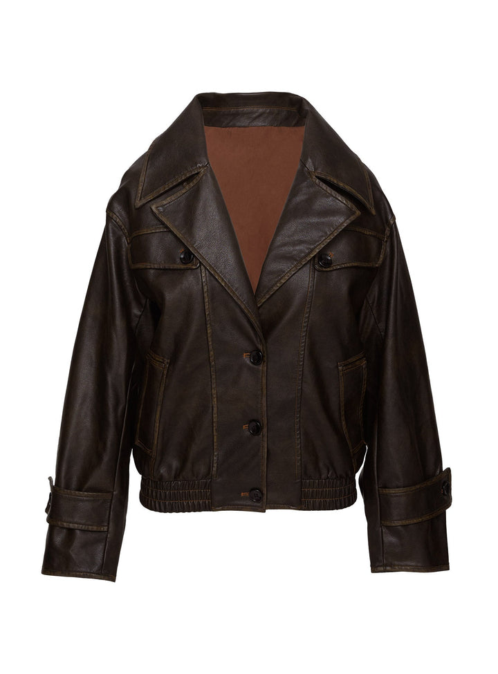 Nicolie Suni Deri Ceket Vintage Yıkanmış Kahverengi